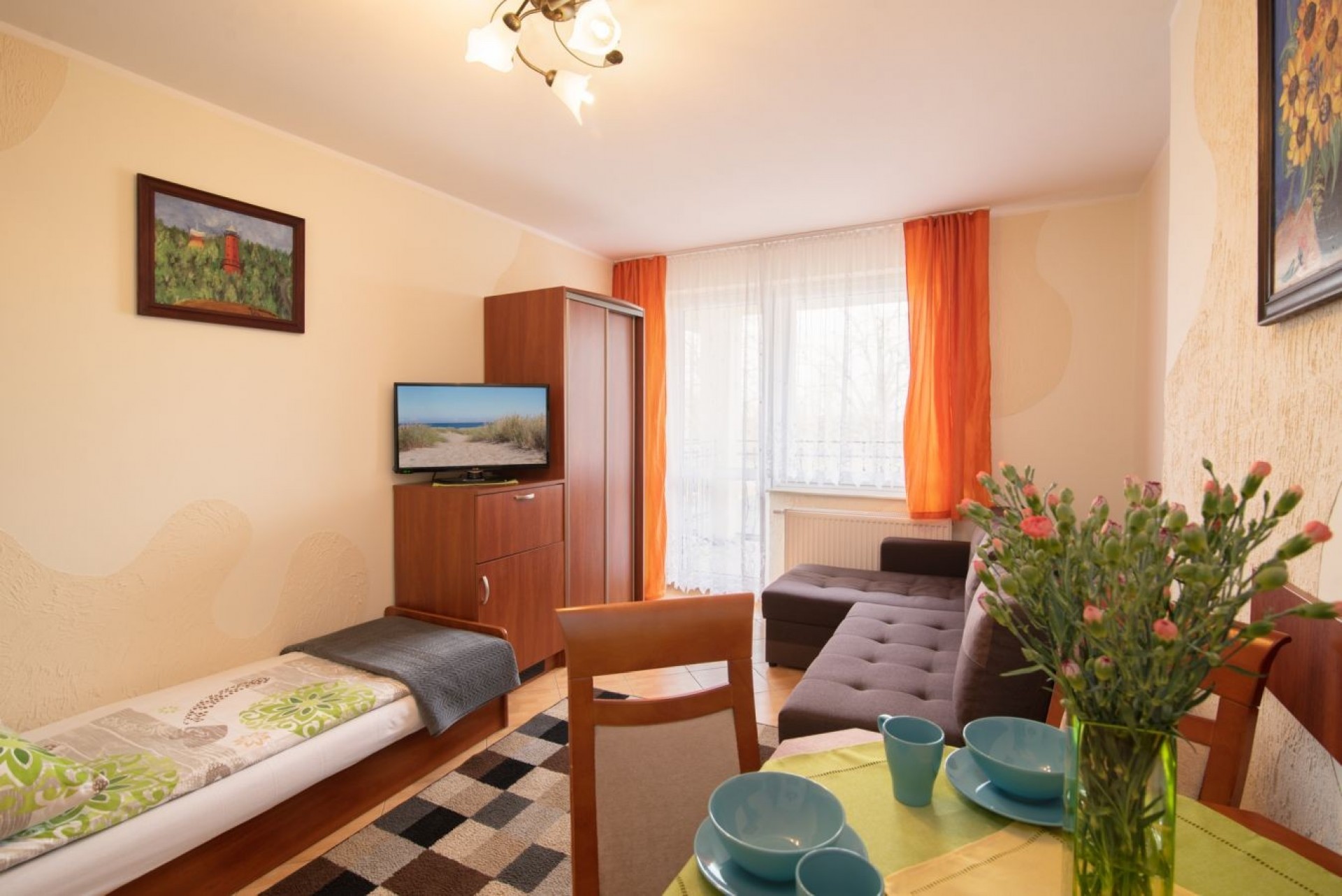 - łazienkę z kabiną prysznicową, suszarką do włosów;