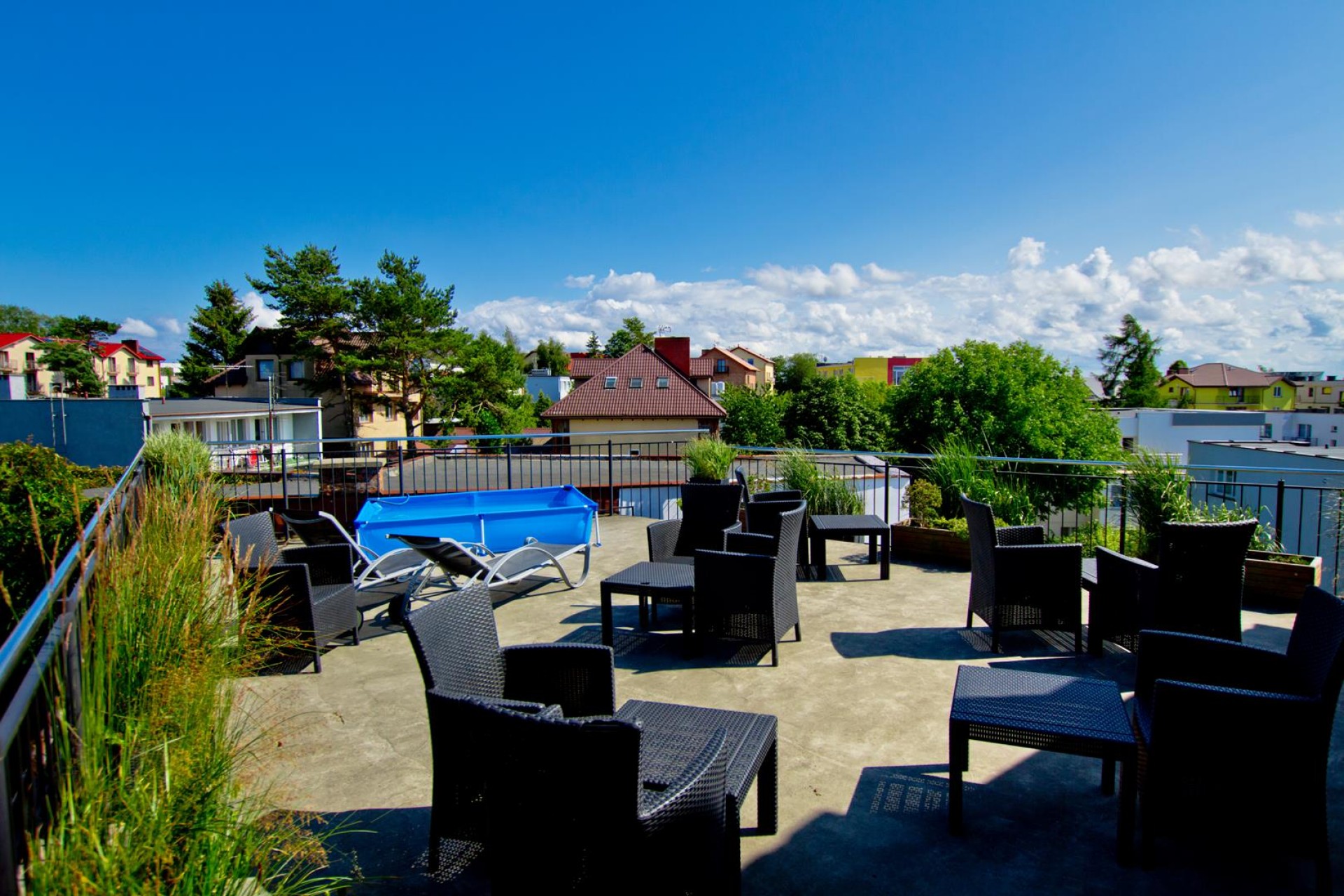 Wszystkie pomieszczenia zostały komfortowo wyposażone w łazienkę z prysznicem oraz ręcznikami, telewizor, radio, podstawowy zestaw naczyń, czajnik elektryczny, lodówkę i sprzęt plażowy. Każde pomieszczenie posiada także balkon i suszarkę do bielizny.