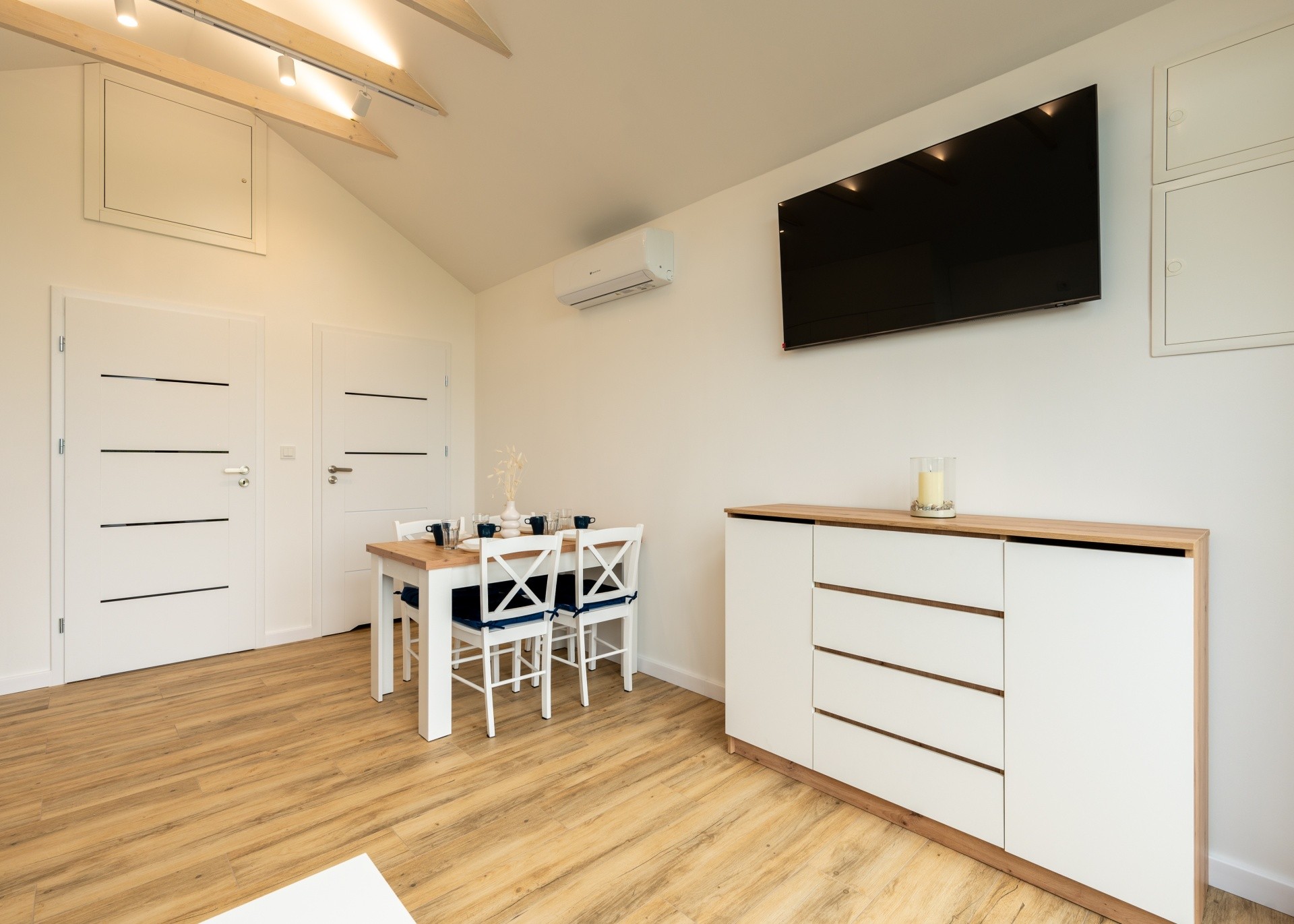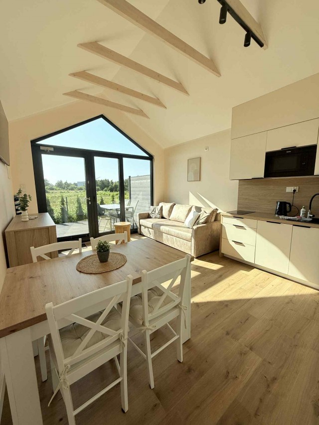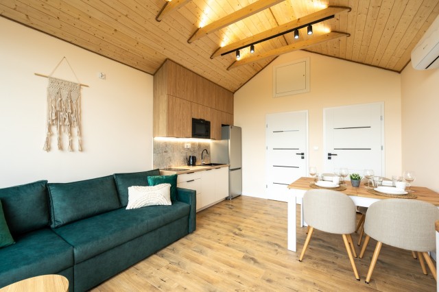 Oferujemy klimatyzowane, przytulne, nowocześnie i stylowo urządzone całoroczne domki typu stodoła o powierzchni 35 m2 dla maksymalnie 4 osób, które zapewnią wszystko to, czego potrzebują Państwo do pełnego relaksu.