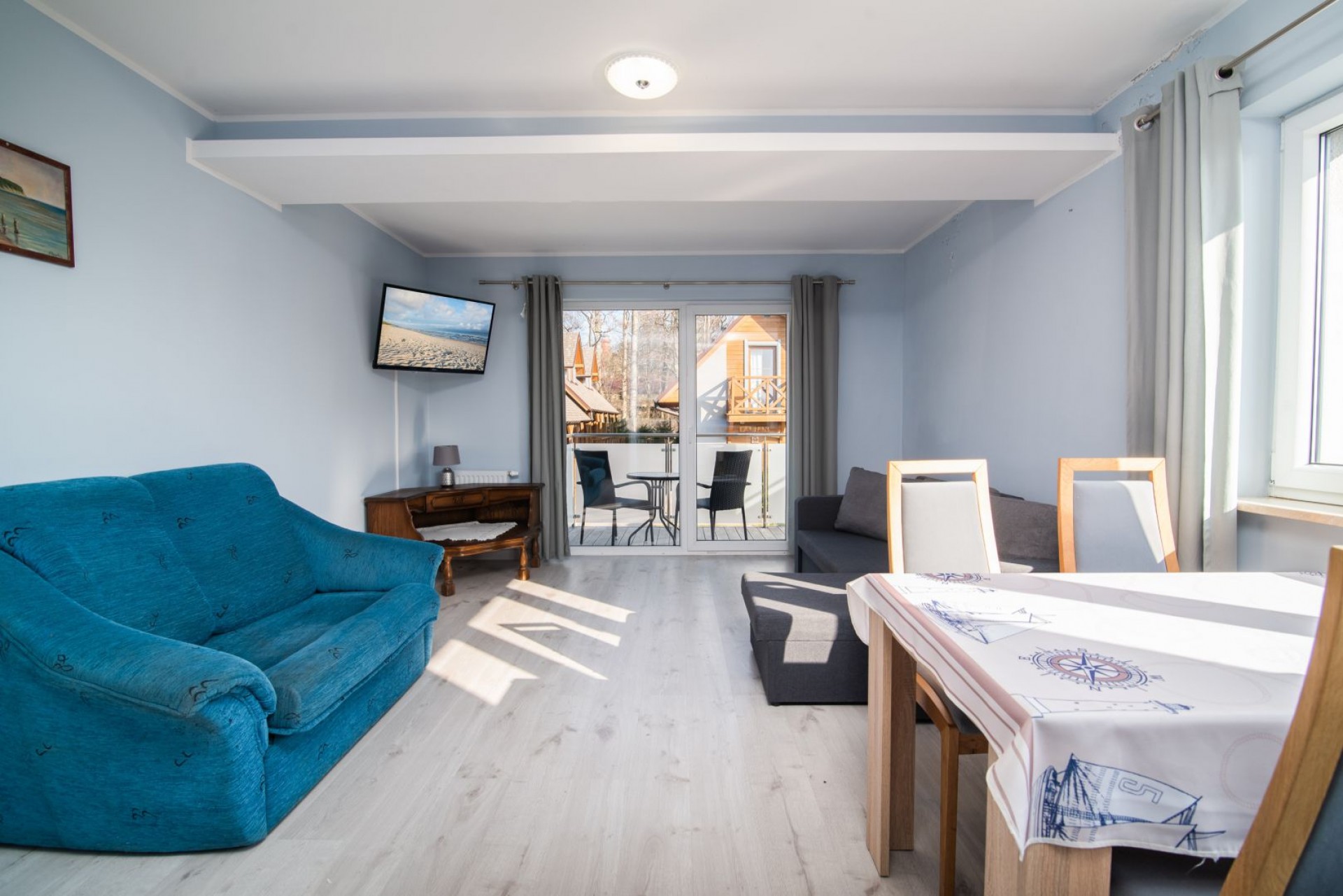 Do Państwa dyspozycji oddajemy piętnaście w pełni wyposażonych domków 4-6 osobowych i komfortowo urządzone apartamenty 3-6 osobowe oraz duży ogrodzony i bezpłatny parking.