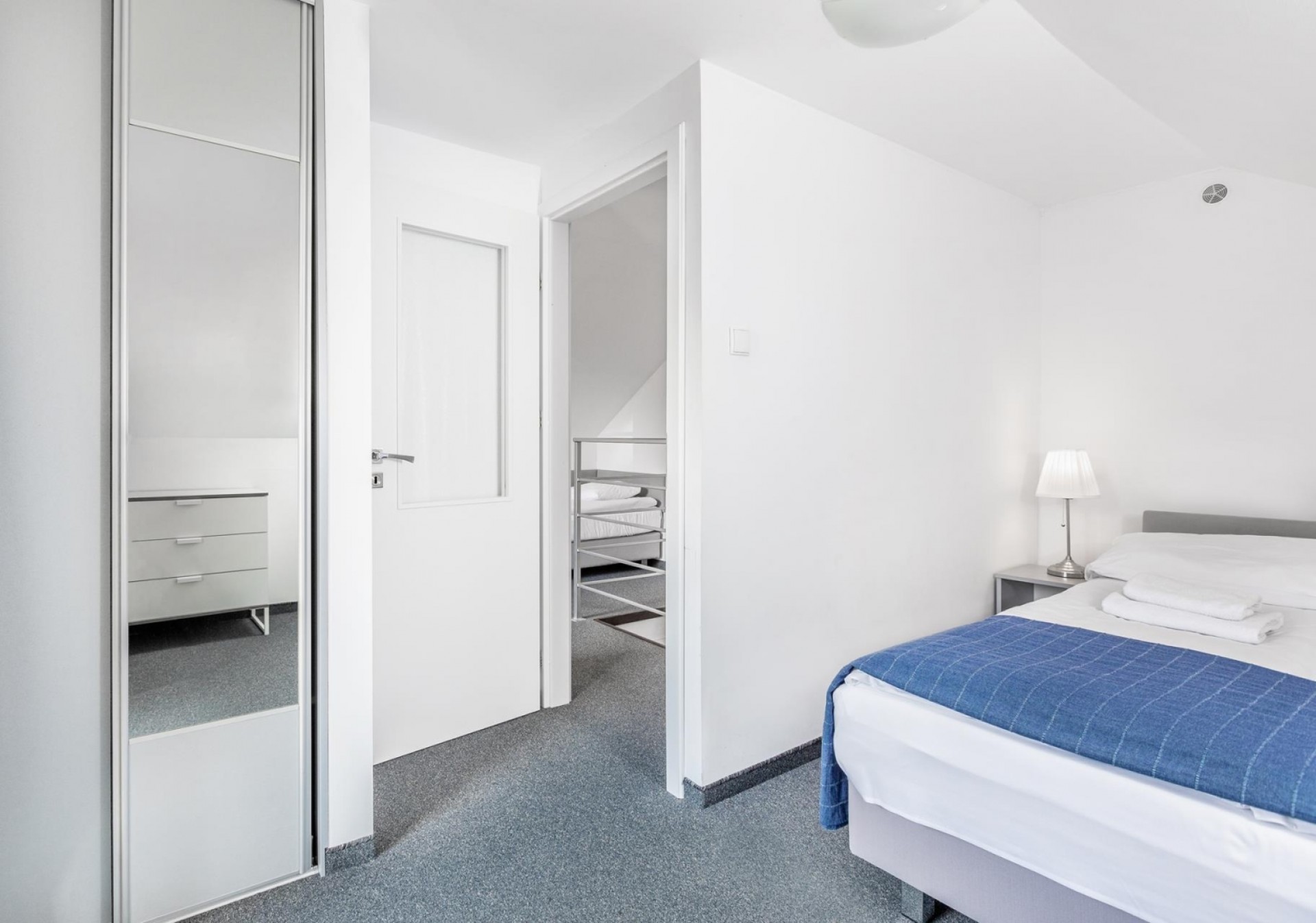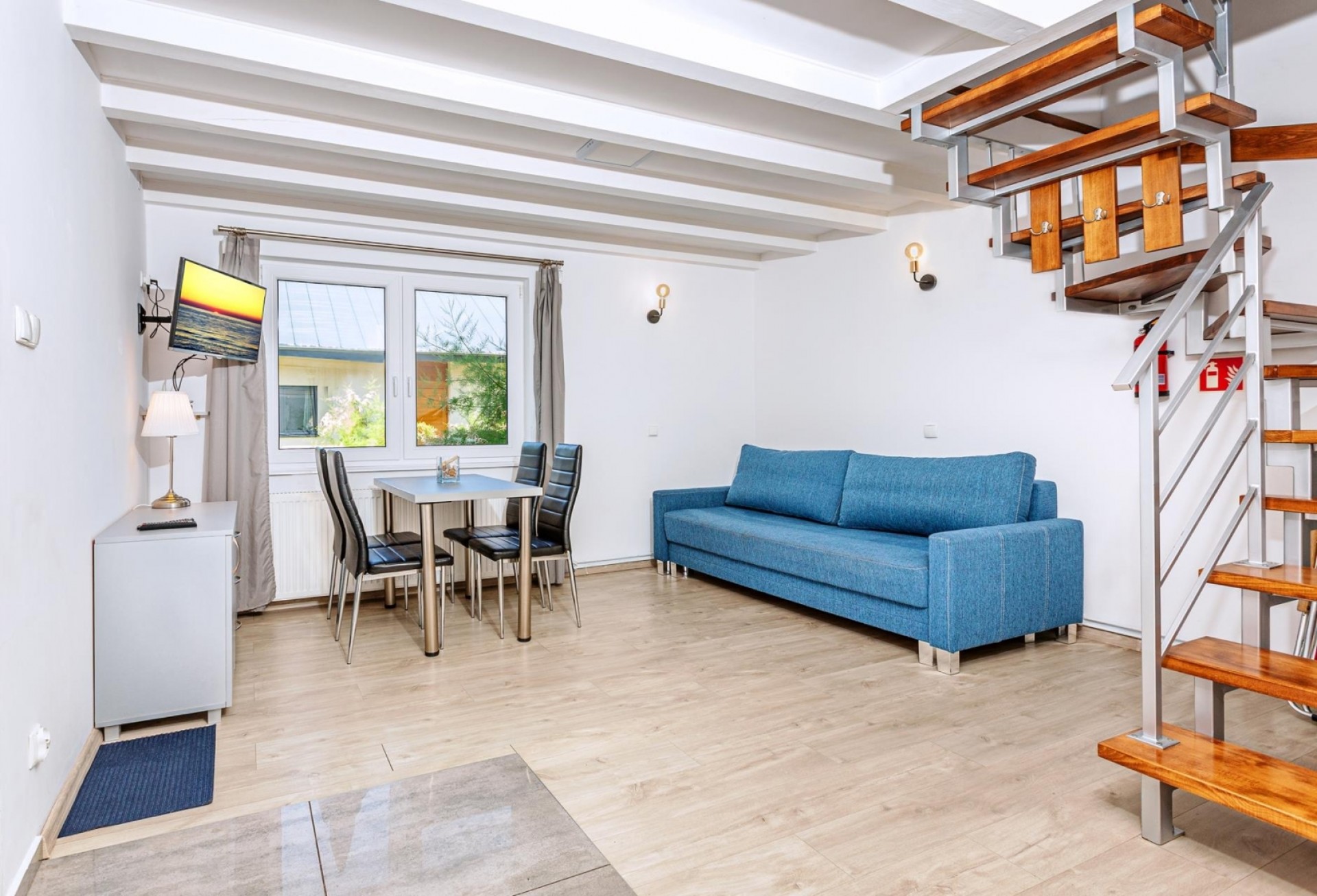- dwóch sypialni z wygodnymi łóżkami (w tym jedna przejściowa): 1 łóżko podwójne, 2 łóżka pojedyncze, 1 rozkładana kanapa