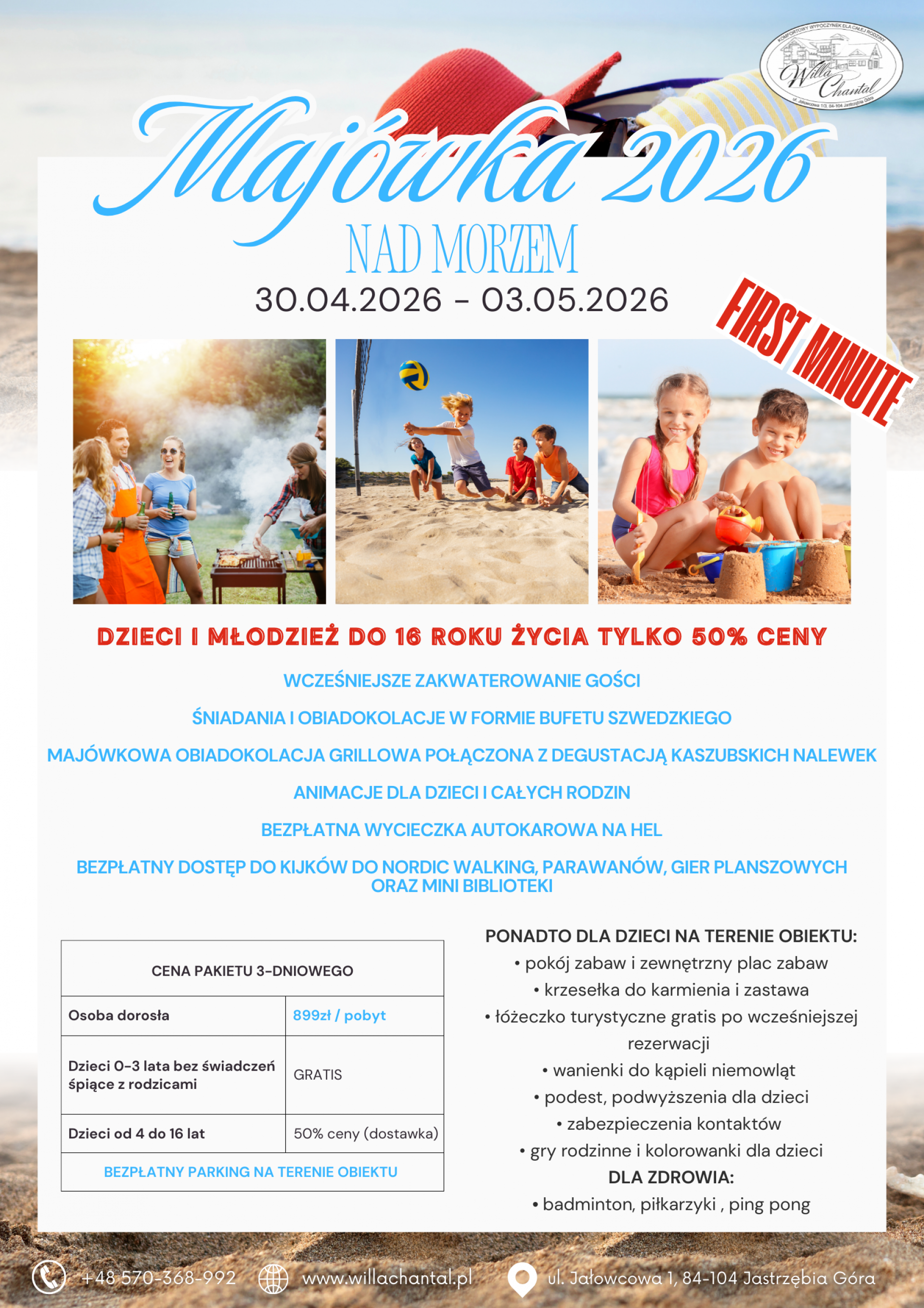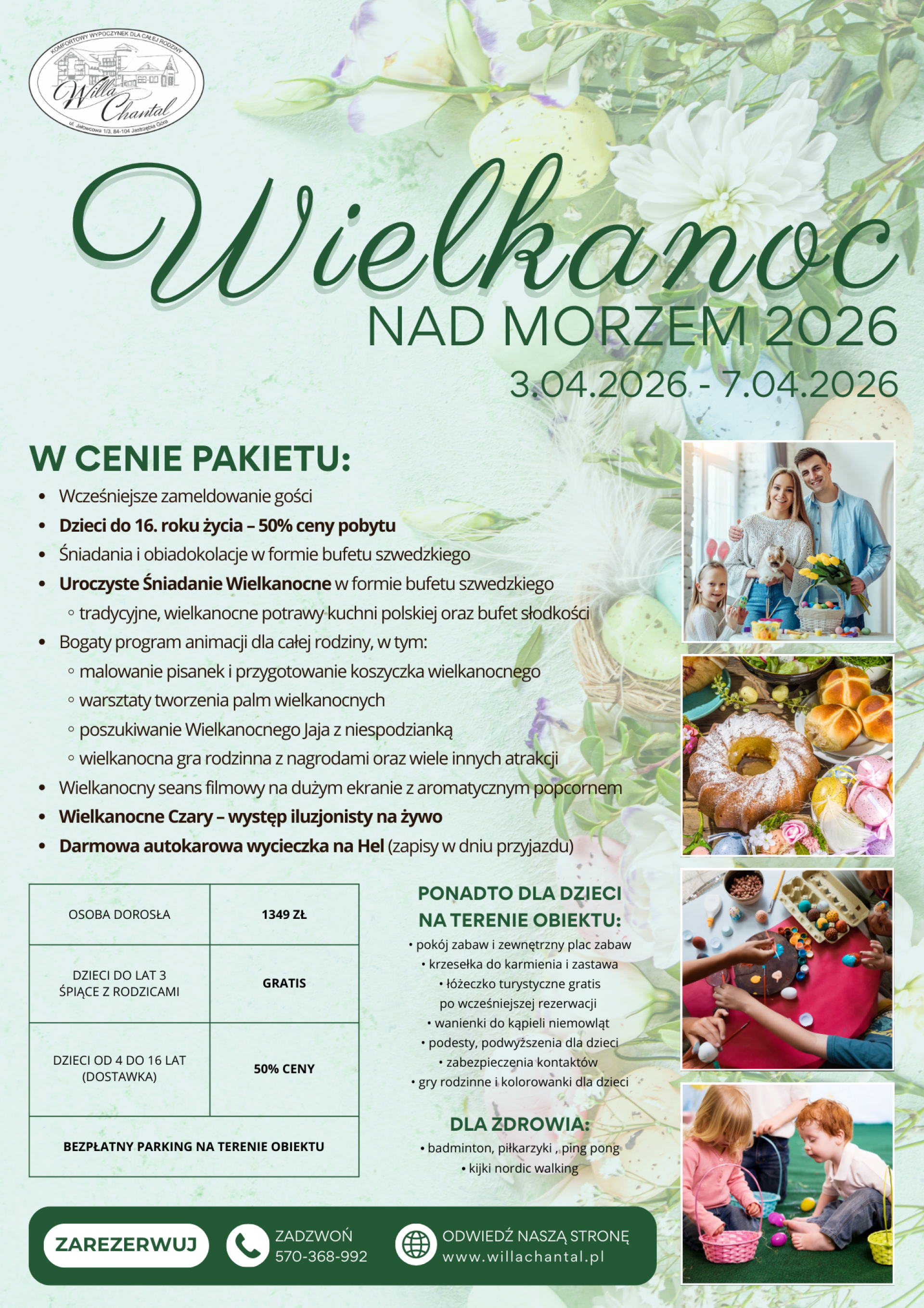 *Willa Chantal zastrzega sobie prawo do zmiany cen oraz programu pobytu.