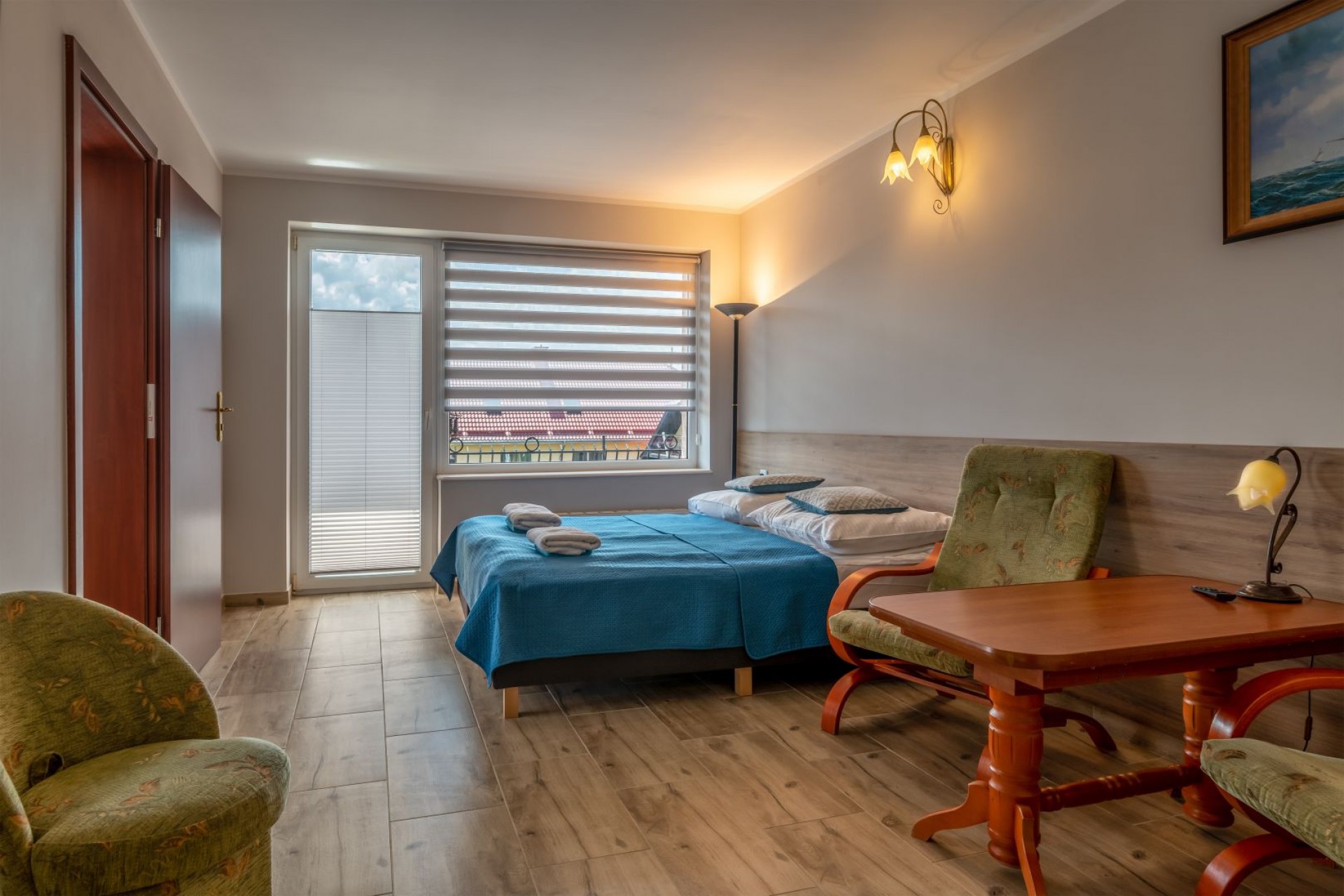 są to 2 pokoje przechodnie z balkonem, na balkonie stolik z krzesłami, możliwość spania w obu pokojach, łazienka (prysznic)