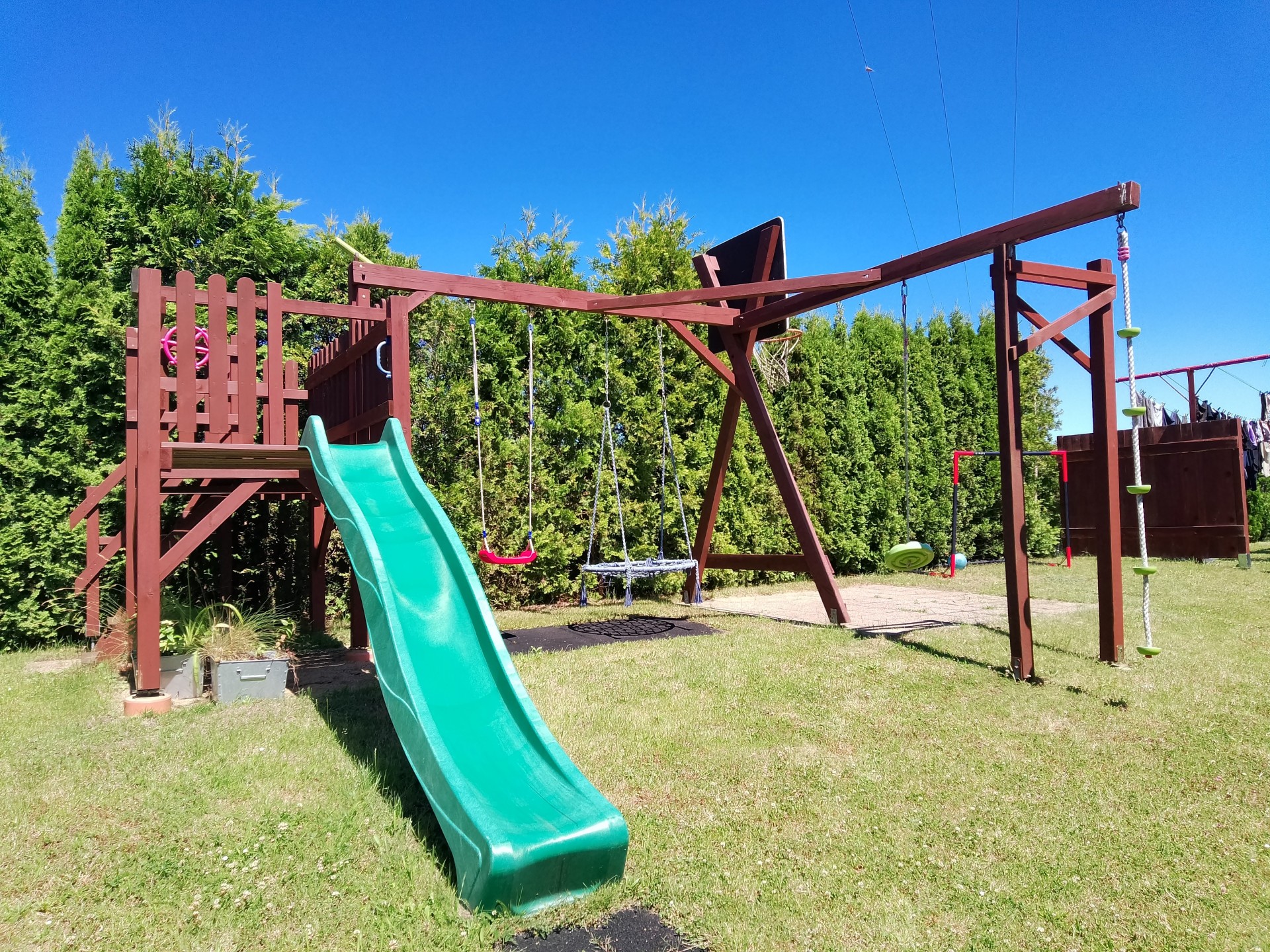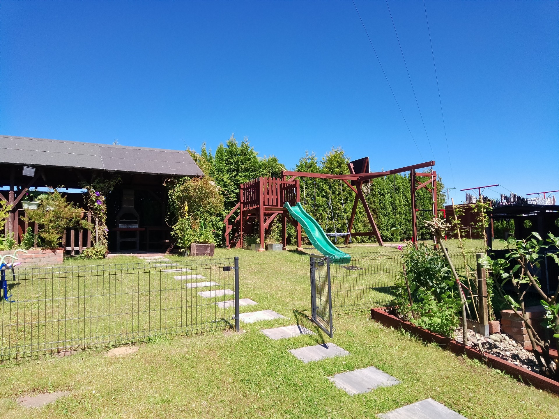 Na terenie posesji znajduję się także plac zabaw (trampolina, huśtawki, bujaki, hamak, bramka, siatkówka, kosz do gry w piłke .... oraz miejsce do grillowania.